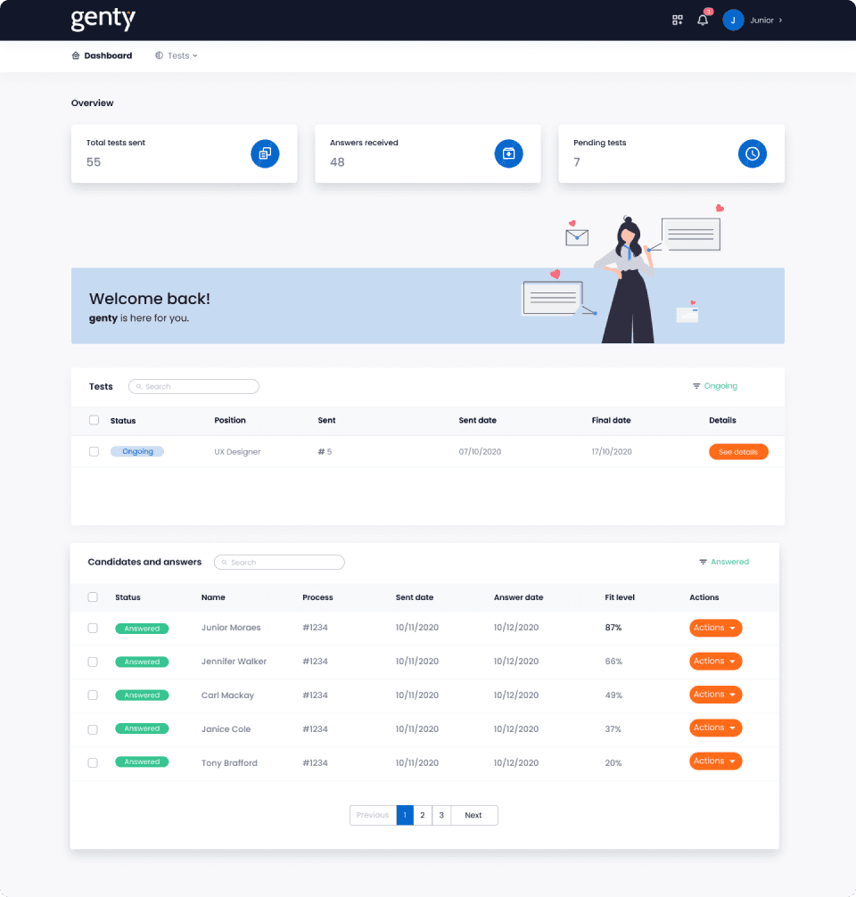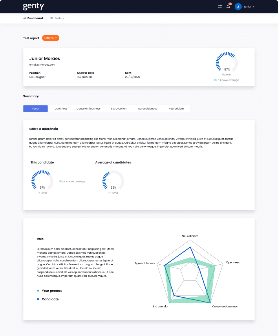 Genty is a behavioral analysis tool that helps you understand candidates profile quickly, assertively and at a super affordable cost for companies of any size.