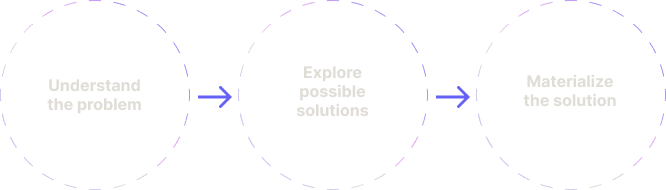 During all projects that I work, I try to follow a simple structure based on the famous Design Thinking framework. And that is: Understand the problem (be curious), explore possible solutions (talk to people and iterate upon feedback) and materialize the solution (test and implementation).